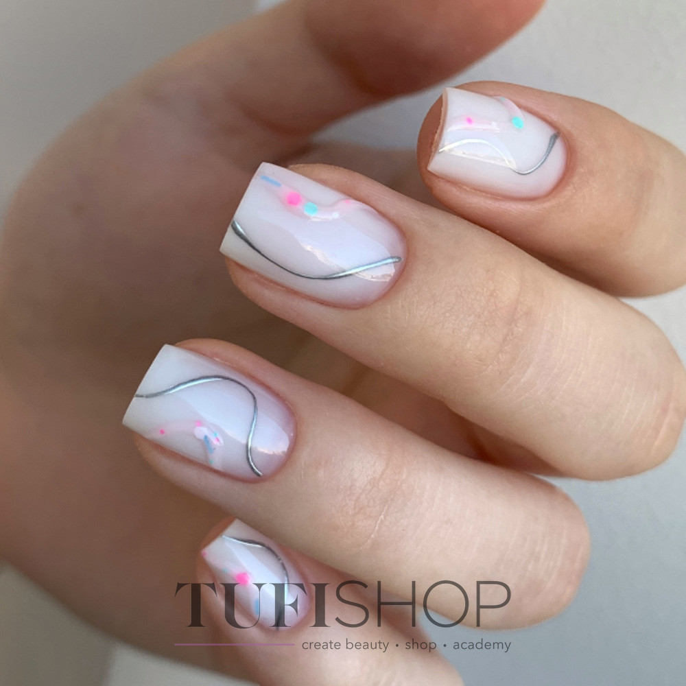 База NAILSOFTHEDAY - камуфлирующая база с добавлением ярких мерцающих кусочков потали. Коллекция от Potal Base –это нежно-молочные базы, трендовые и стильные, они придают ногтям нежность и дарят ощущение летней свежести. База легко наносится на ногти, скрывая мелкие визуальные недостатки. Не требует дополнительного опила, хлопья потали ровно распределяются по ногтю. Держится на ноготках в неизменном виде (без сколов и трещин) длительное время, благодаря стойкости к механическому воздействию. Можно использовать как самостоятельное покрытие.
