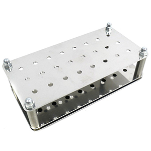 - Прямоугольная подставка для маникюрных фрез, открытого типа. Имеет регулируемый держатель, поэтому может раскладываться в трех положениях. Не имеет крышки. В нашем магазине продаются подставки для турбинного или прямого наконечника. Такие модели удобны и для повседневного использования, и для стерилизации в автоклаве.