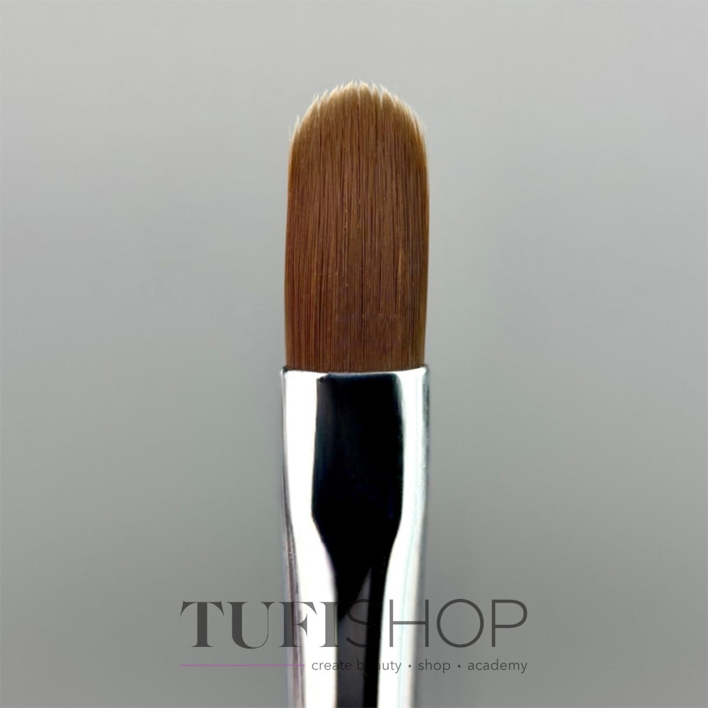 Кисть для геля (11×5 мм) — округлой формы, позволяет легко выкладывать материал, равномерно распределять его по ногтевой пластине, обеспечивает точную работу в зоне боковых валиков и контроль толщины слоя без лишних движений.