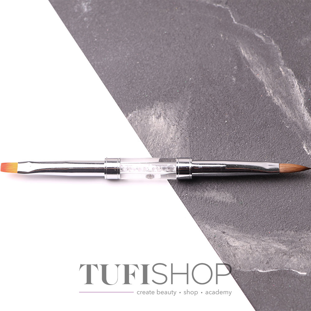 Для достижения совершенного маникюра мастеру понадобится хорошая кисть. Кисточка для геля Komilfo Double Acrylic имеет прочное основание, в котором расположен ворс и удобная ручка. После использования кисточки в гелевом материале не возникает нежелательных пузырьков, которые портят вид и заставляют снимать материал или делать наращивание заново. Кисточка для ногтей Komilfo Double Acrylic изготовлена из упругого искусственного ворса, который идеально подойдет для гелевого наращивания.