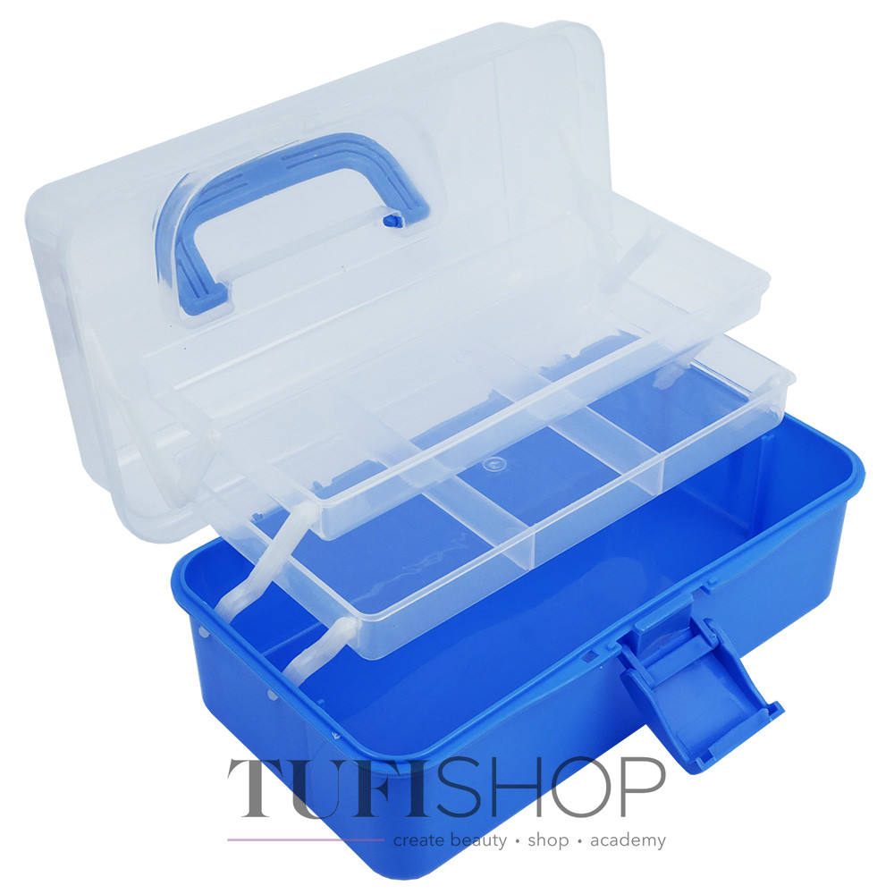 Контейнер сделан из прочного пластика, эргономичный и удобный в работе. За счет ручки, раскладных отделений и небольшого веса, контейнер будет особенно полезен для мастеров, которые работают на выезде.