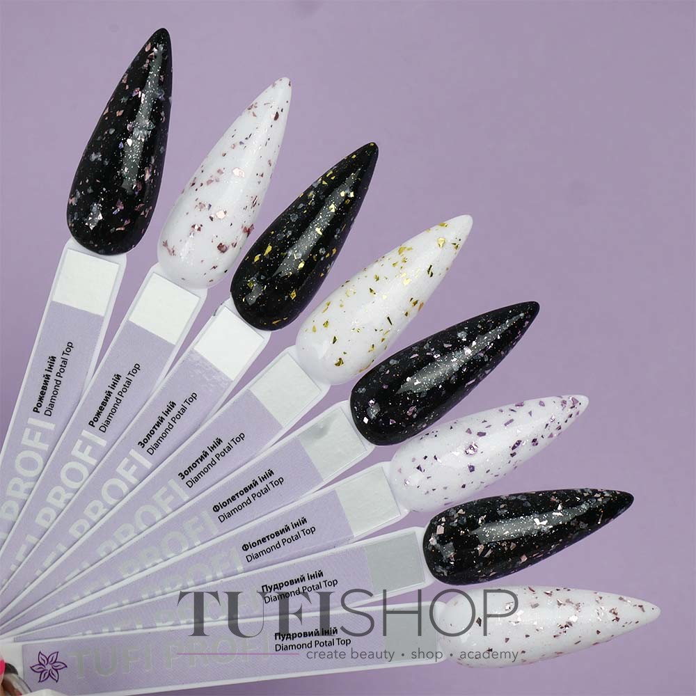 ОТКЛОНИТЬ Настроить ПРИНЯТЬ ВСЕТоп TUFI profi PREMIUM - обновленный, улучшенный, совершенный топ для гель-лака, который создает качественное декоративное покрытие на натуральной ногтевой пластине. В состав Diamond Potal Top входят кусочки золотой потали и шиммер. Финишное покрытие удобно в работе, равномерно обволакивает пластину твердой пленкой. Топ для гель-лака имеет густую консистенцию, не будет затекать на кутикулу и боковые валики. Топ Туфи профи имеет стойкое покрытие, не трескается, не скатывается, обеспечивает нанесение с легкостью и удовольствием. Топ не имеет липкий слой, поэтому не требует снятия липкости. Максимальное количество крошки и шиммера, позволяет идеально нанести топ с поталью с первого слоя.