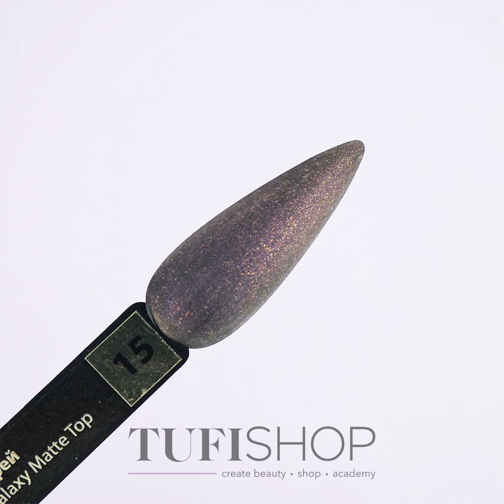 Топ TUFI profi PREMIUM Galaxy Matte Top - обновленный, улучшенный, совершенный топ для гель-лака, который создает качественное декоративное покрытие на натуральной ногтевой пластине. Финишное покрытие удобно в работе, равномерно обволакивает пластину твердой пленкой. Топ для гель-лака имеет густую консистенцию, не будет затекать на кутикулу и боковые валики. Топ TUFI profi PREMIUM Galaxy Matte Top лучше всего проявляет себя на темных оттенках, а на светлых еле заметен. Топ Туфи профи имеет стойкое покрытие, не трескается, не скатывается, обеспечивает нанесение с легкостью и удовольствием.