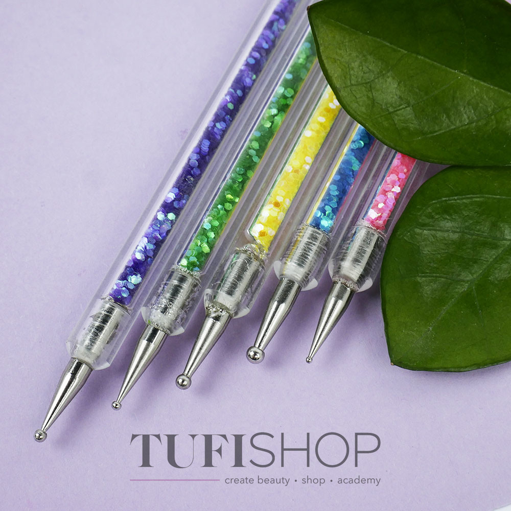 Was tun, wenn Sie ein ungewöhnliches Muster auf Ihren Nägeln wünschen? Mit verschiedenen Technologien im Nageldesign können Sie Ihre Maniküre mit saftigen und schillernden Mustern abwechslungsreich gestalten. TUFI profi präsentiert eine Neuheit in der Kollektion – ein Set TUFI profi PREMIUM Art Pinsel . Dieses Nailart-Set besteht aus doppelseitigen Maniküre-Werkzeugen: Pinsel und Punkte. Die Pinsel haben eine flache Form und eine Liner-Form, perfekt zum Zeichnen langer und dünner Linien, zum Zeichnen feiner Details sowie für die French-Maniküre. Die Elastizität und Elastizität der Borsten tragen zu einer hervorragenden Kontrolle über den Farbfluss bei. Mit Hilfe von Punkten können Sie perfekt gleichmäßige Muster aus Kreisen unterschiedlichen Durchmessers erstellen und mit einem französischen Muster eine Lachlinie zeichnen. Dadurch können Sie auf Ihren Nägeln allerlei einzigartige Muster erzeugen. Das ergonomische Design und die Form des Werkzeugs ermöglichen es Ihnen, es perfekt in der Hand zu halten und keine Beschwerden zu verursachen.