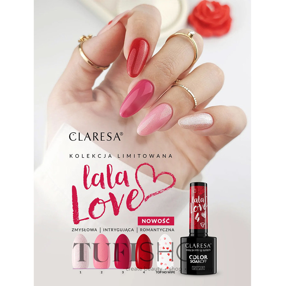 TOP No Wipe La La Love ist ein transparenter Überlack mit zweifarbigen Herzen in Rot- und Rosatönen. Die dezent eingearbeiteten Verzierungen verleihen der Maniküre eine romantische und einzigartige Note und sorgen gleichzeitig für ein elegantes, glattes Finish. Der Claresa Topper harmoniert perfekt mit allen Farben der La La Love Kollektion, betont deren Farbtiefe und erzeugt einen subtilen, juwelenartigen Effekt. Der transparente Überlack mit Herzen ermöglicht eine dekorative Maniküre, ohne dass zusätzliche Verzierungen nötig sind. Die dezenten Elemente reflektieren das Licht wunderschön, und der Hochglanz des Überlacks garantiert ein langanhaltendes und ästhetisch ansprechendes Ergebnis.
