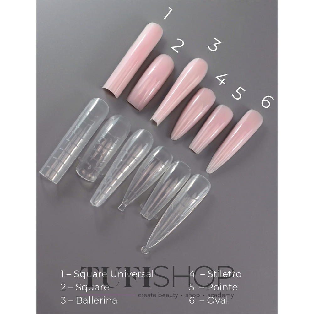 Gepflegte und schöne Hände sind heutzutage von modernen Frauen kaum mehr wegzudenken. Die ideale Maniküre hängt zweifellos vom Künstler ab, aber natürlich auch von den Materialien und Werkzeugen, die für die Arbeit verwendet werden. Ein sehr wichtiger Ausrüstungsgegenstand, den jeder Handwerker haben sollte, sind die oberen Touch-Formen. Diese Formen werden für Nagelverlängerungen mit Acryl oder Polygel mit minimalem Feilen verwendet. Lockenverlängerungen erfreuen sich bei vielen Mädchen großer Beliebtheit, da Sie nicht nur die gewünschte Länge, sondern auch eine gepflegte Form wählen können. Das Set enthält 12 Größen, 120 Stück. Touch Upper formt Pointe – für 80 % der Nagelplattentypen. Geeignet für gebogene, onychogryphotische und Sprungbrettnägel. Sie ermöglichen den Aufbau nicht einer langen Ballerina, sondern einer Spitze, einer Mandel und eines Ovals.