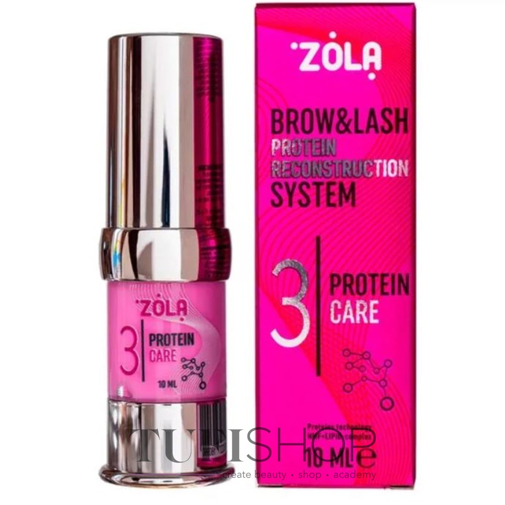 Zusammensetzung 03 Protein Care – stellt die körpereigene Protein- und Lipidmasse des Haares wieder her, sorgt für eine tiefgreifende Rekonstruktion und sanfte Haarpflege. Wird in der dritten Stufe des innovativen Augenbrauen- und Wimpern-Laminierungssystems von Zola verwendet.